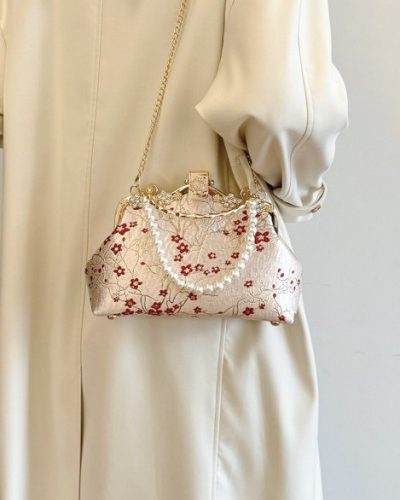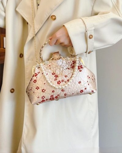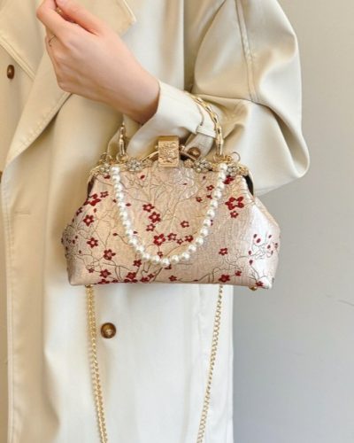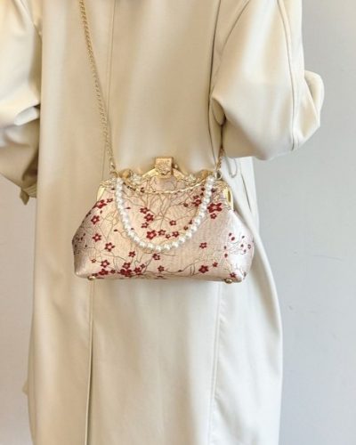 Red Flower Pearl Handbag