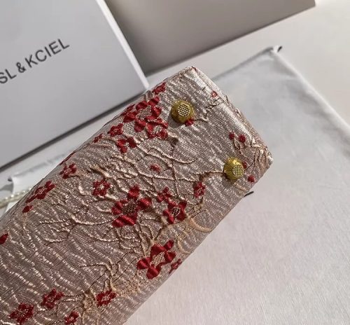 The quilted texture with red flower pearl detail adds a soft feminine touch while keeping the look premium and classy.